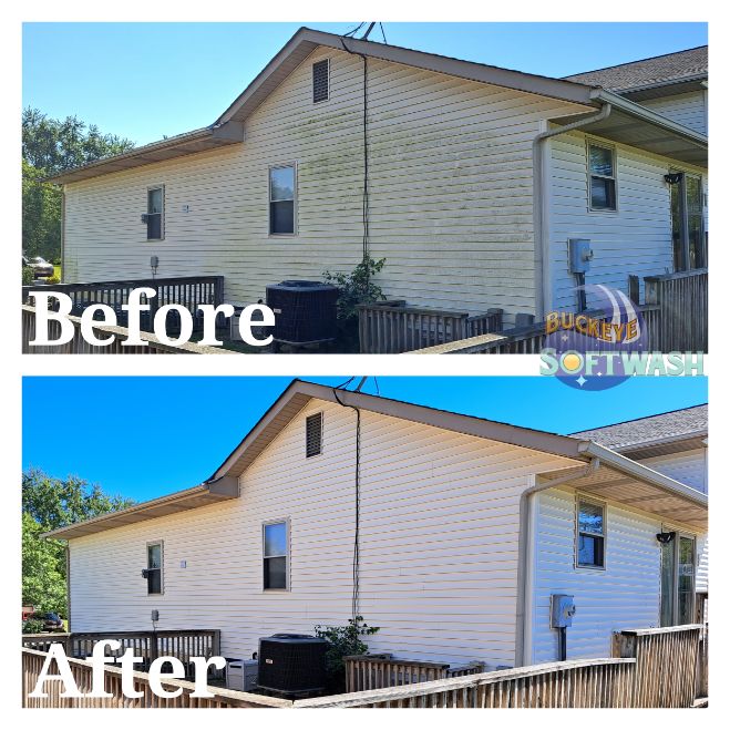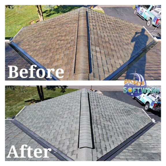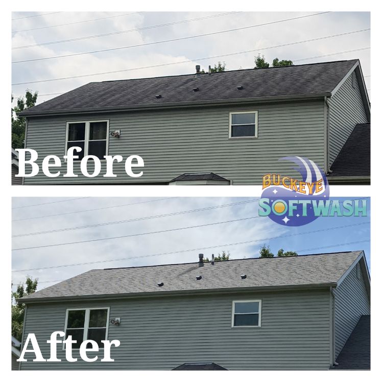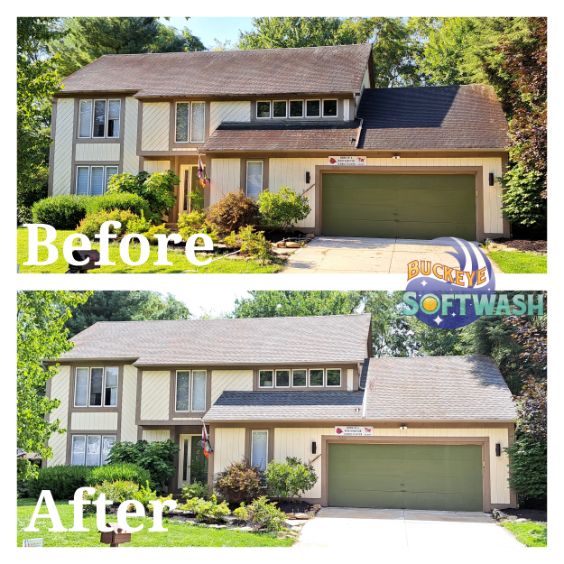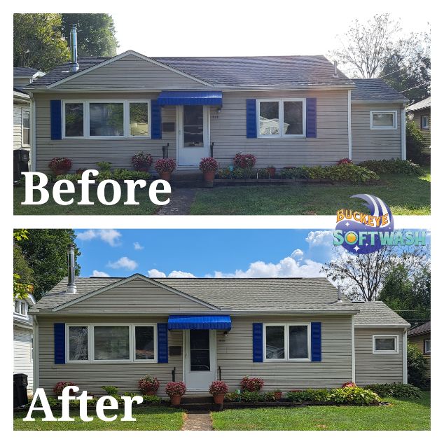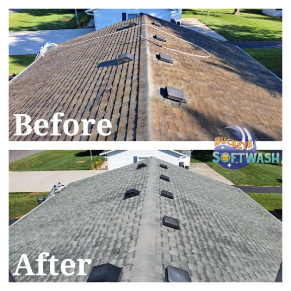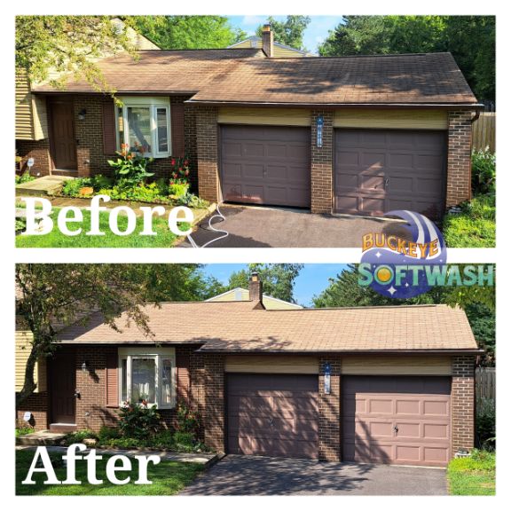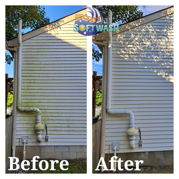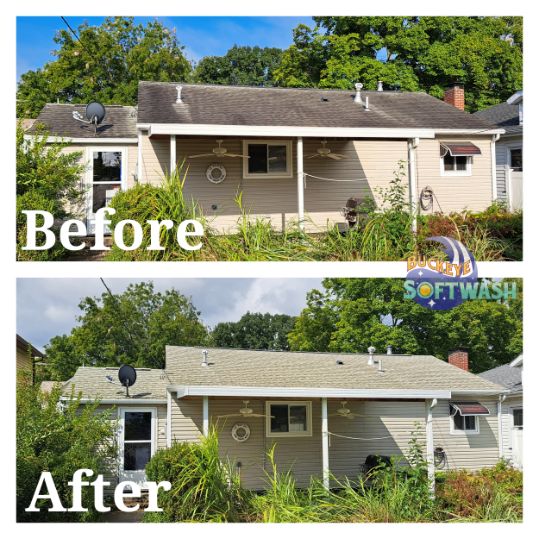 At Buckeye Softwash, we offer the safer alternative to pressure washing for siding, roofing, gutters, and more. Soft washing is more than cleaning– it also sanitizes, penetrates, and eliminates the root of the dirt and grime. Take a look at our photo gallery to see some before-and-after images of our work to see the difference soft washing can make, and then give us a call to schedule your appointment. We’ll make your property look like new again!