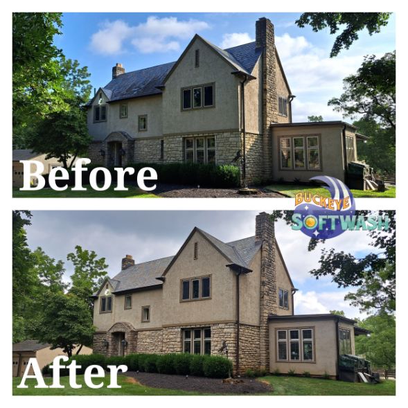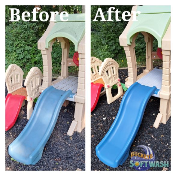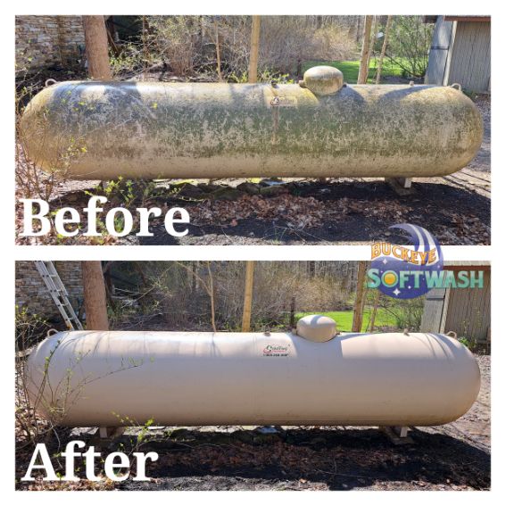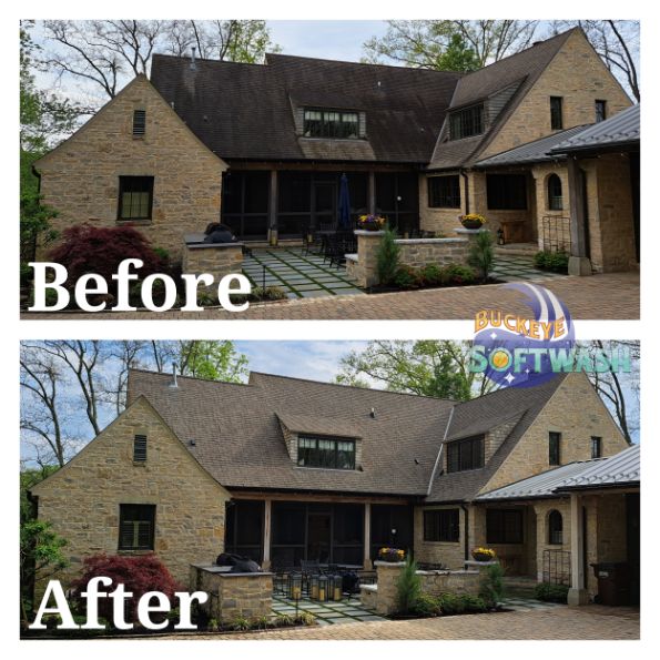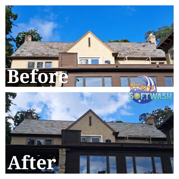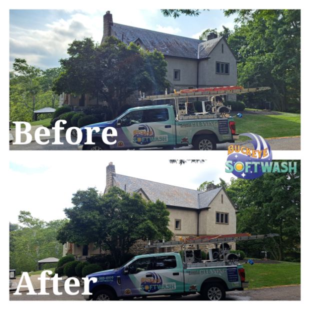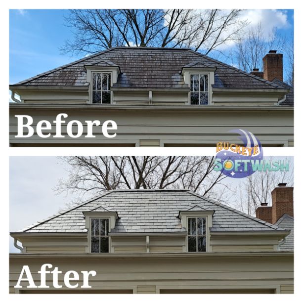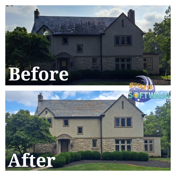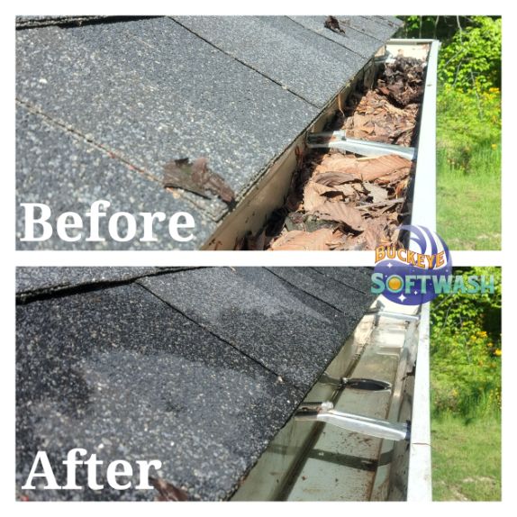 At Buckeye Softwash, we offer the safer alternative to pressure washing for siding, roofing, gutters, and more. Soft washing is more than cleaning– it also sanitizes, penetrates, and eliminates the root of the dirt and grime. Take a look at our photo gallery to see some before-and-after images of our work to see the difference soft washing can make, and then give us a call to schedule your appointment. We’ll make your property look like new again!